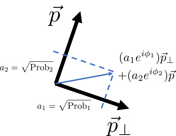 This is a picture of measurement in general, for any incoming light described by a, and any filter that lets through light described by p (of course, p is orthogonal to p⊥). Note that the phase is ignored!: