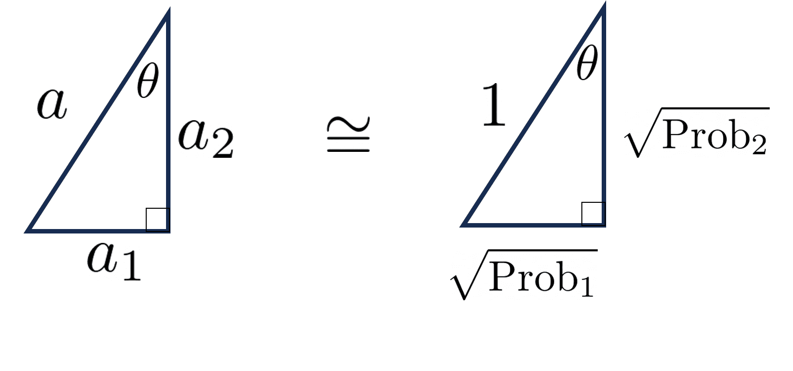 First of all, the filter doesn't care about the magnitudes of either state. So we'll have to ignore them when we get the probability. It's common to notate the magnitude of a vector as a=∣a∣=a12+a22. Typically we choose to always ignore the magnitudes by setting a=1 and p=1 * .